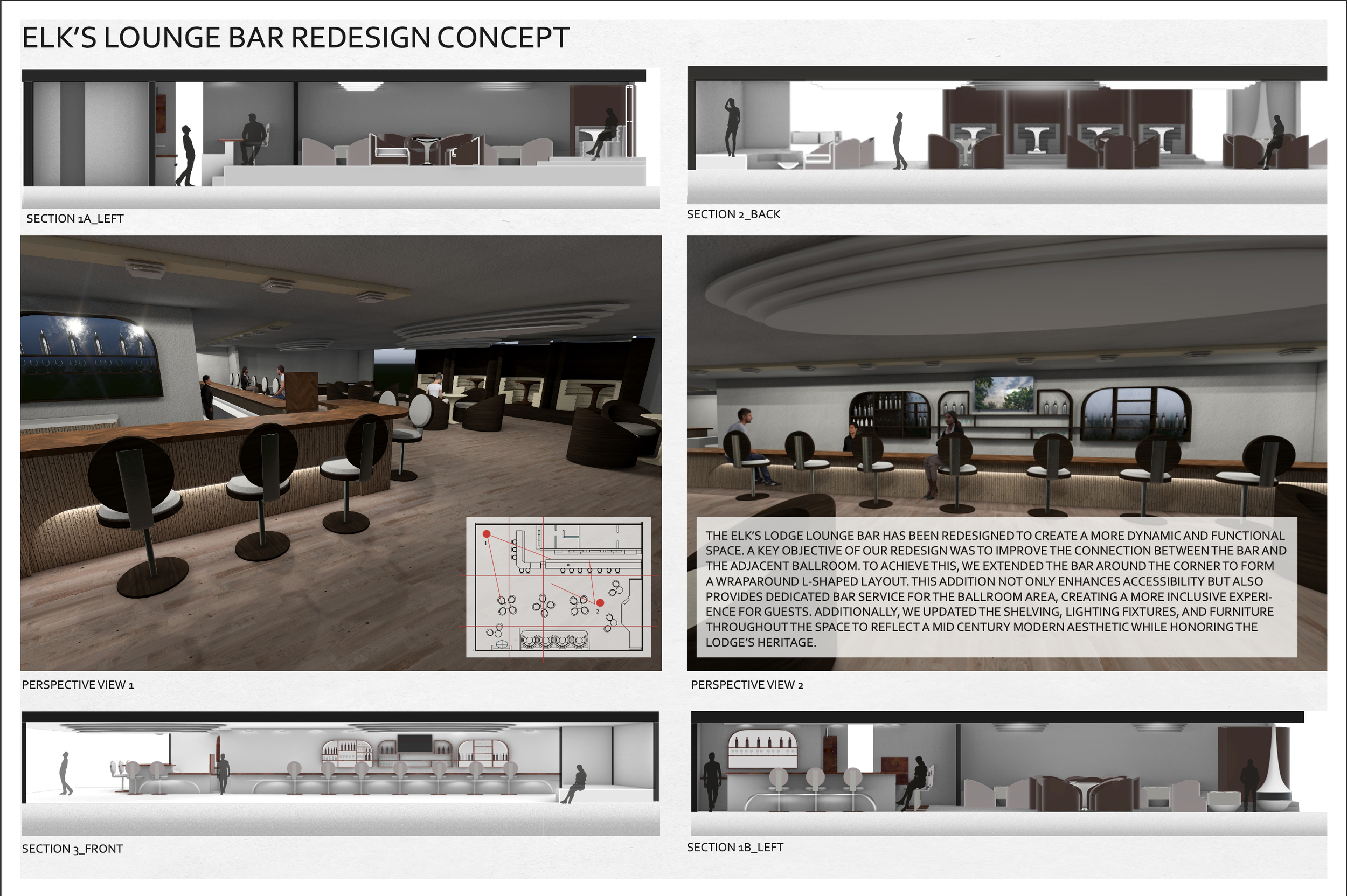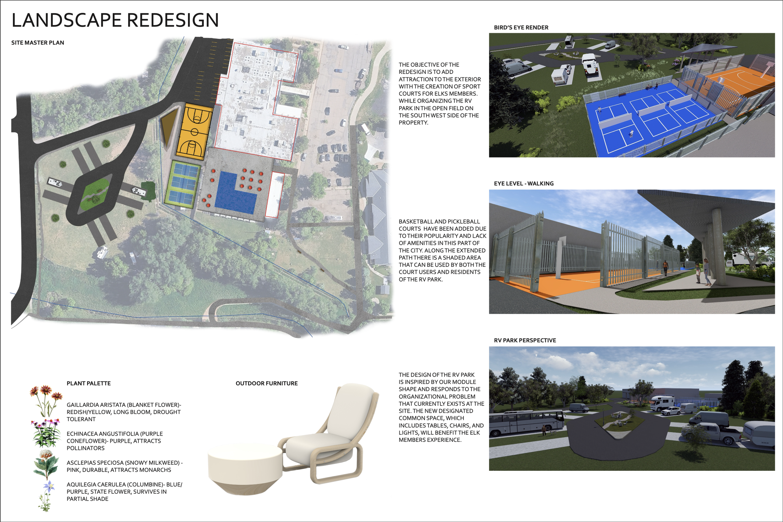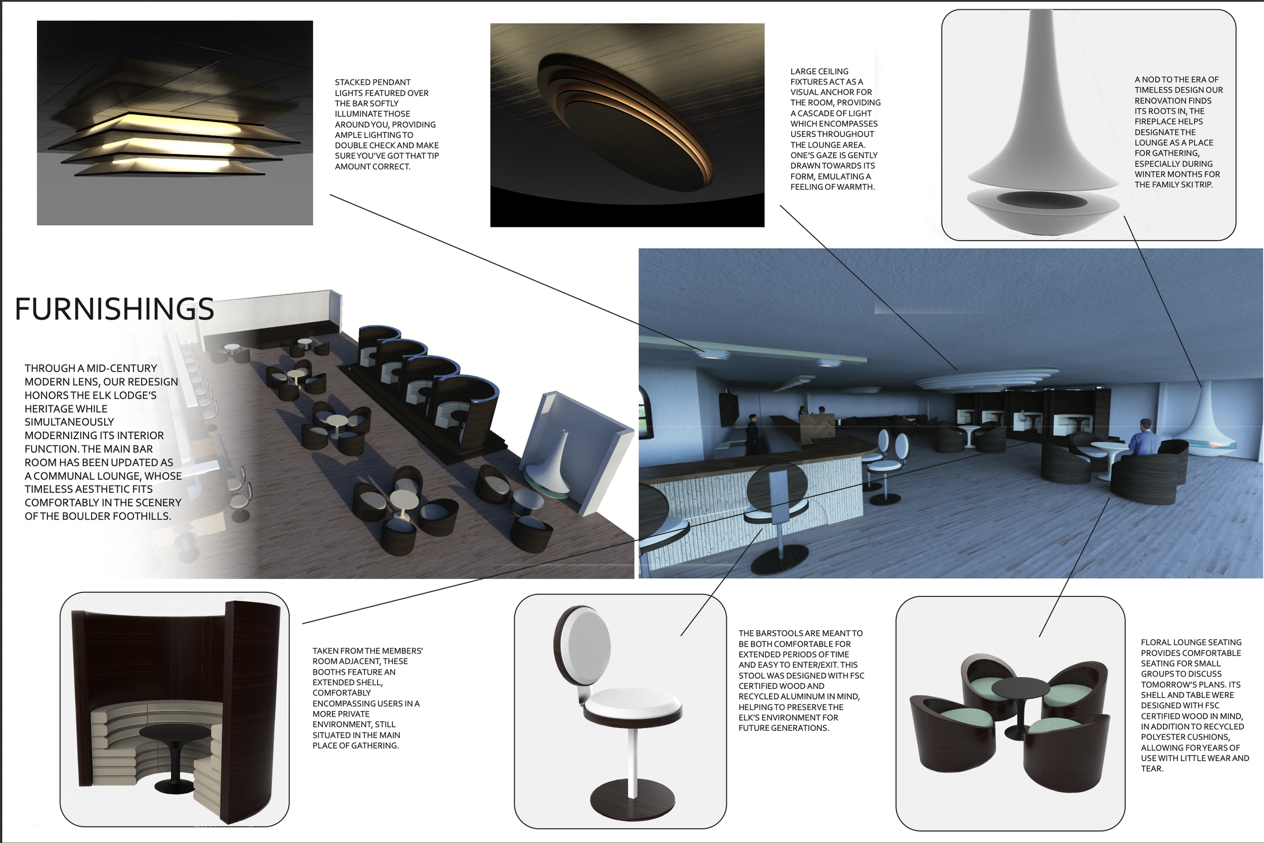 A Multidisciplinary approach towards modernizing old-school community driven ideals. For the conclusion of this studio, students from product design, architecture and landscape architecture were formed into teams and tasked with refurbishing a local clubhouse.